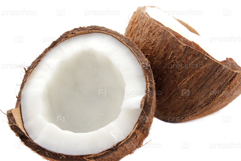 Расколотый кокос на белом фоне