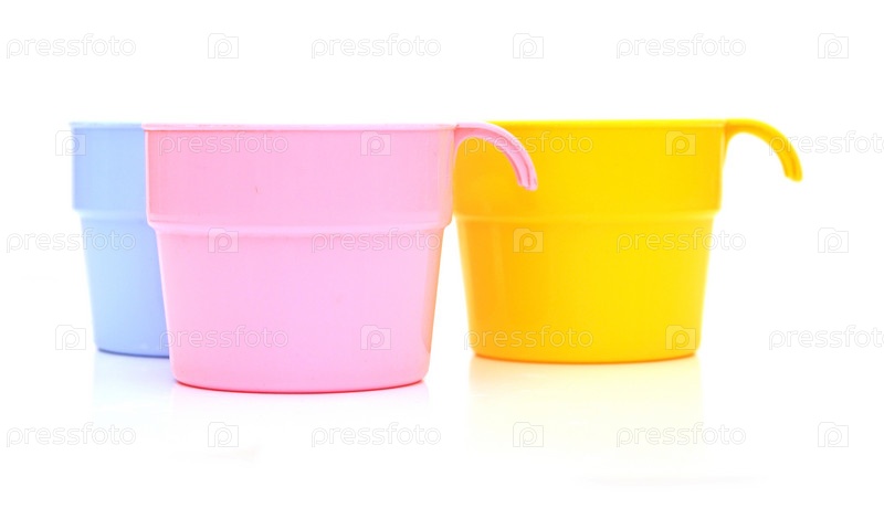 Пластиковые чашки на белом фоне