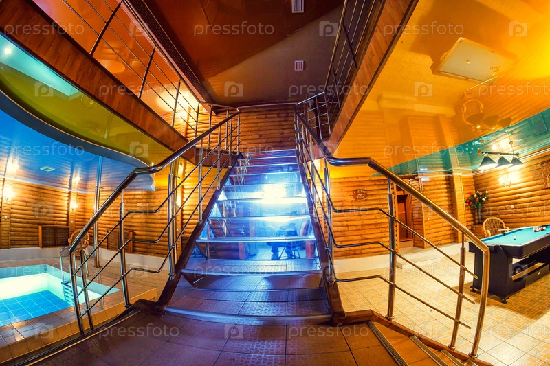 Лестничный пролет с металлическими перилами