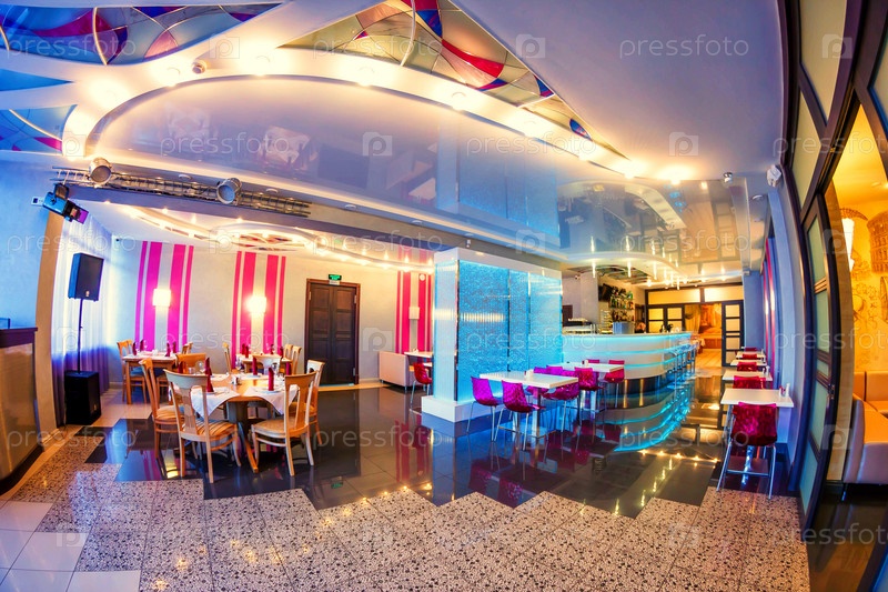 Интерьер ресторана с витражным потолком
