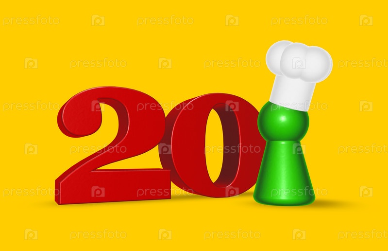Цифра 20 и фигура повара на желтом фоне. 3d Иллюстрация