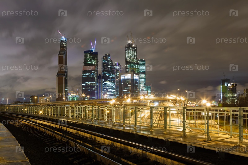 Железная дорога и небоскребы ночью