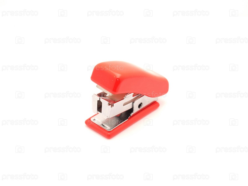 Красный степлер на белом фоне