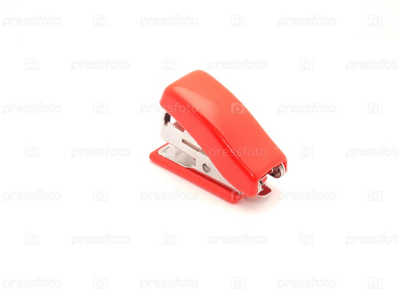 Красный степлер на белом фоне