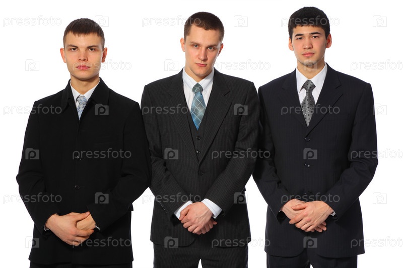 Три молодых бизнесмена на белом фоне
