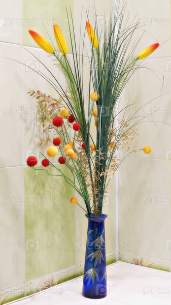 Искусственные цветы в синей вазе