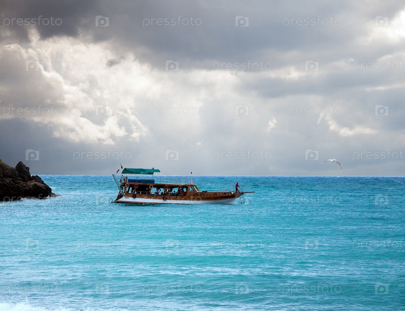 Катер в море и грозовое небо