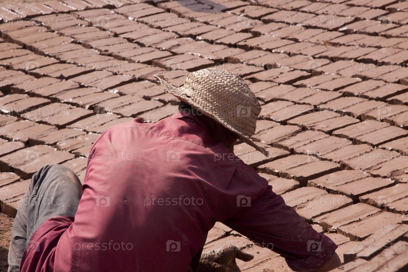 Мастер изготавливает кирпичи из глины