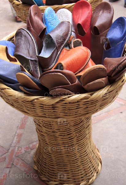 Корзина с кожаными тапочками