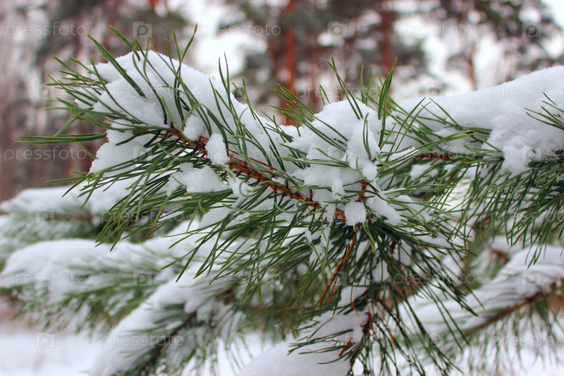 Заснеженная ветка сосны