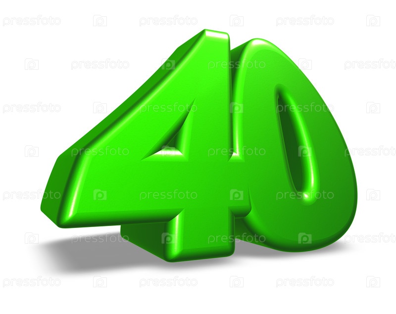 Число 40 на белом фоне - 3D иллюстрация