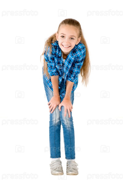 Девочка в джинсах и клетчатой рубашке