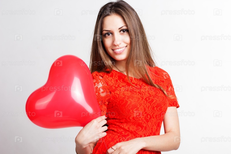 День святого Валентина, женщина держит шарик в форме сердца