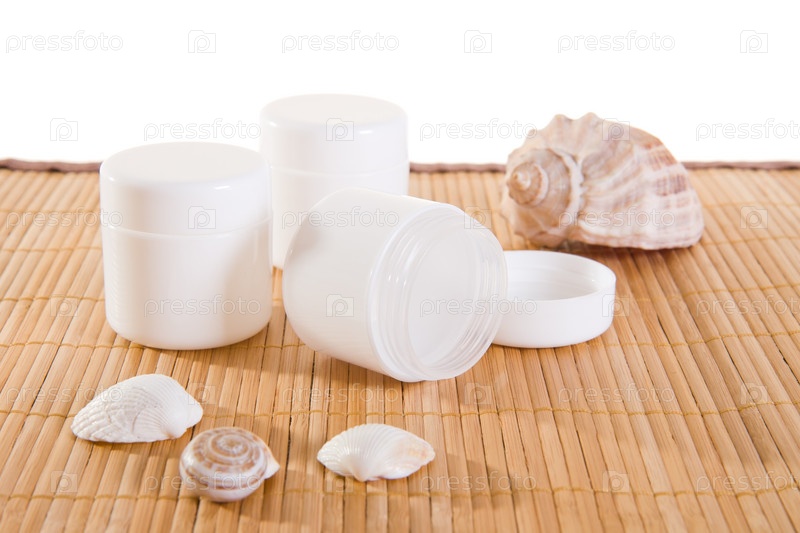 Пустые крема на бамбуковом коврике