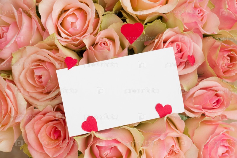 Открытка с сердечками на розах