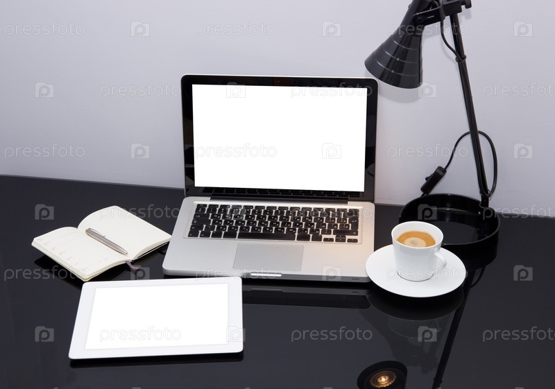 Место работы с ноутбуком и планшетом