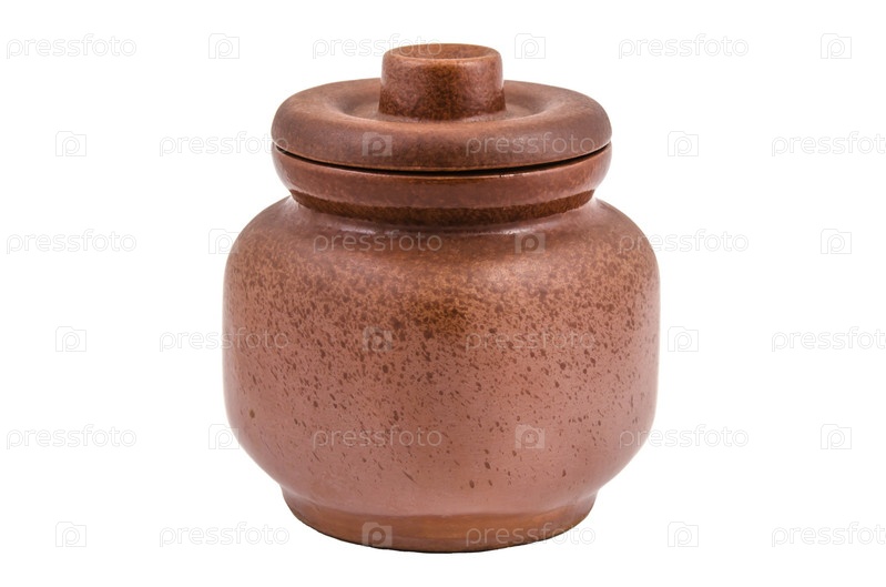 Глиняный горшочек на белом фоне