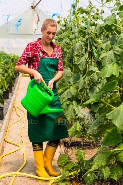 Женщина-садовник в промышленном саду или парнике