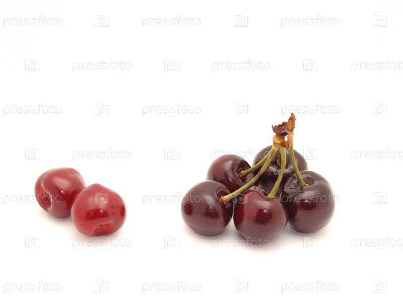 Красная вишня на белом фоне