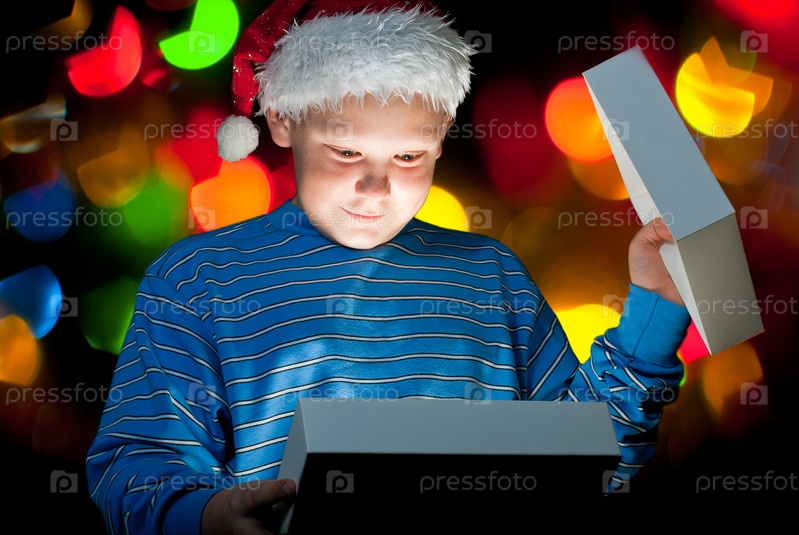 Ребенок открывает коробку с подарком