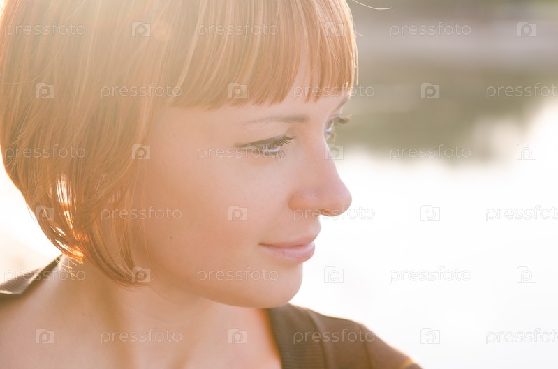 Рыжая женщина в лучах теплого солнца