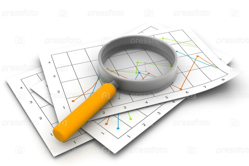 Бизнес-диаграмма и увеличительное стекло