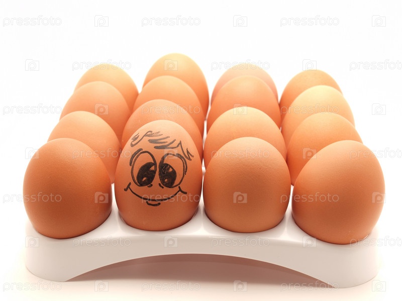 Смайл на одном из яиц на подставке