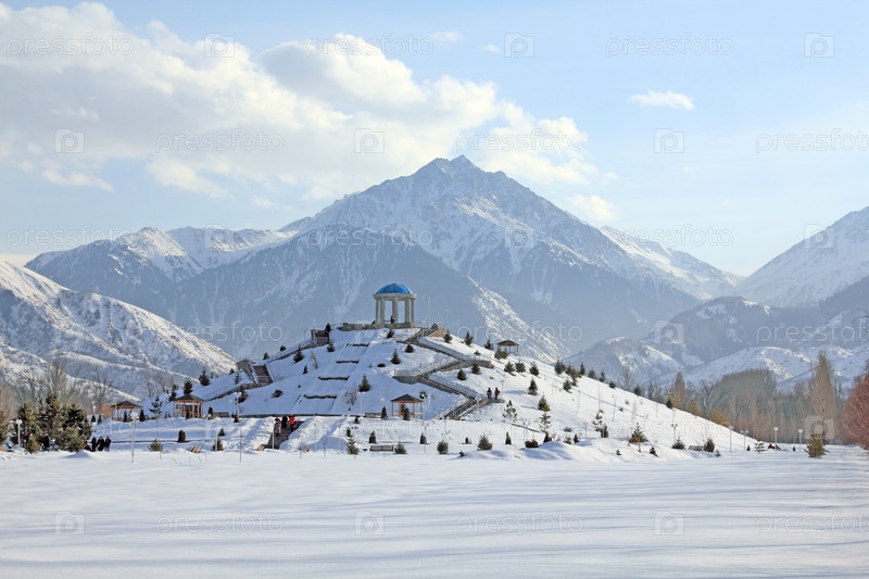 Смотровая горка парка на фоне гор