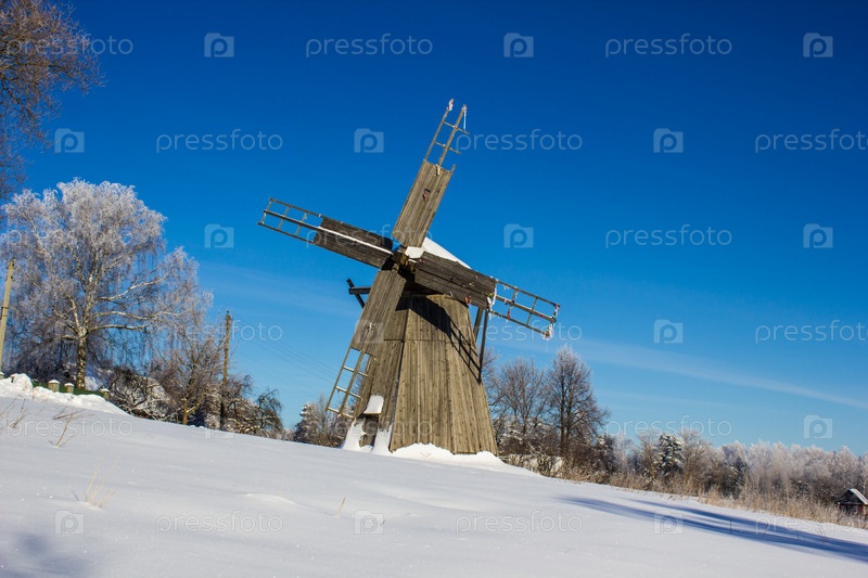 Зимний пейзаж с мельницей