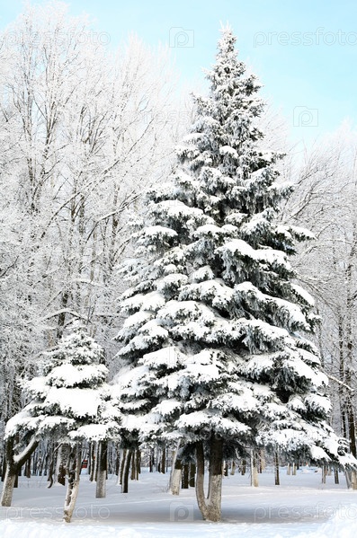 Рождественские елки с заснеженными ветвями