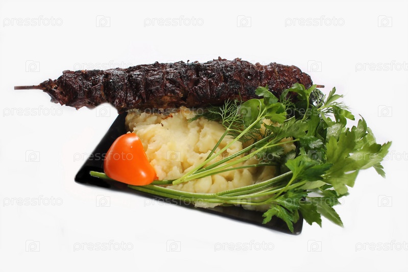 Жаренная на мангале печень с гарниром