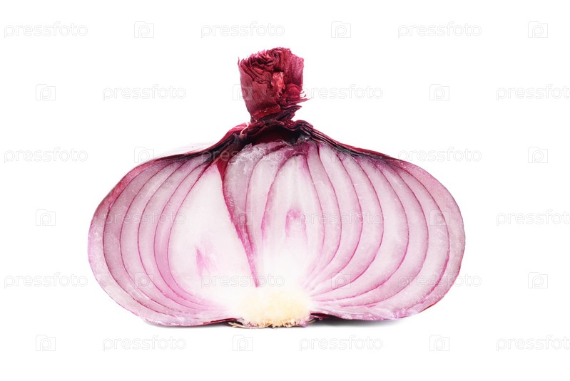 Разрезанный фиолетовый лук, изолированный на белом фоне