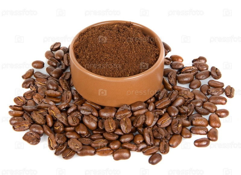 Кофе в зернах и молотый кофе в чашке