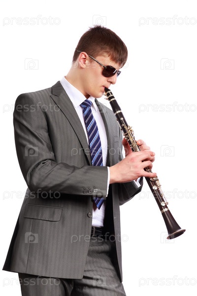 Молодой музыкант играет на кларнете