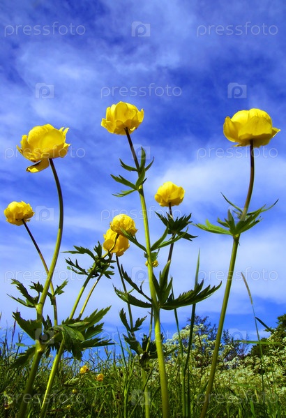 Ярко-желтые цветы на фоне голубого неба
