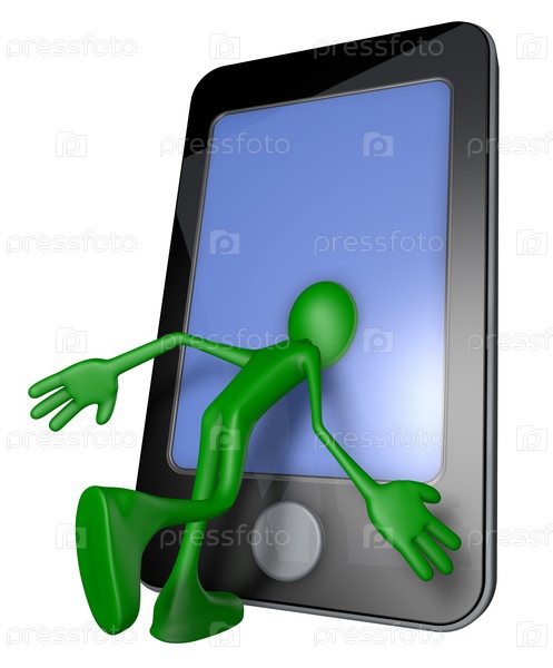 Зеленый человек с головой внутри смартфона - 3D иллюстрация