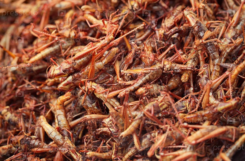 Жареные насекомые на рынке