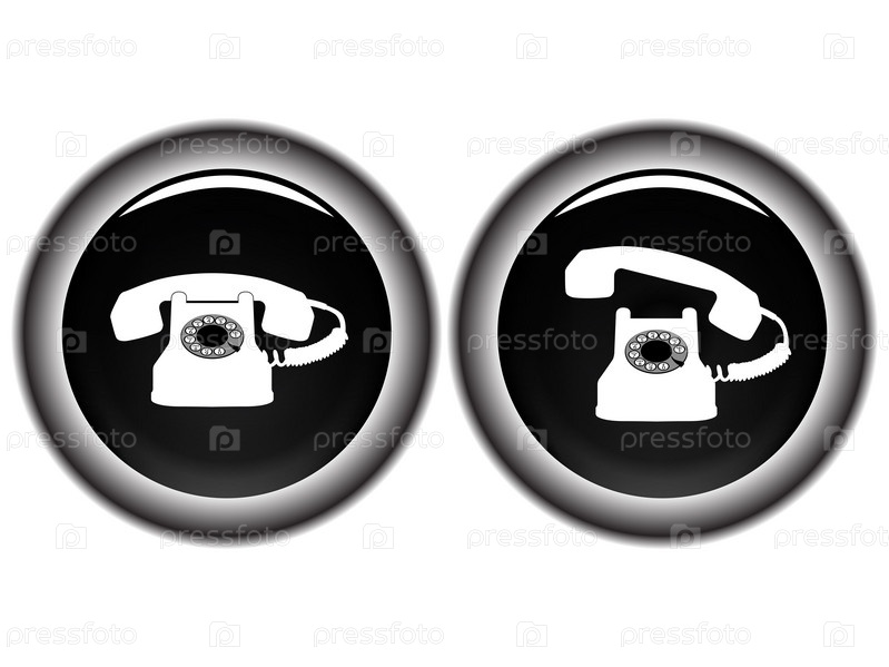 Черные кнопки с иконками телефона на белом фоне