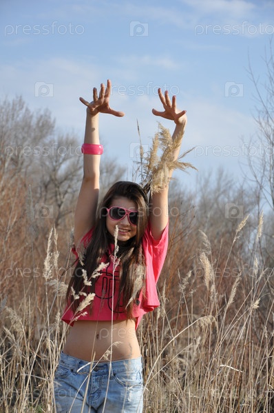 Девушка дурачиться на природе
