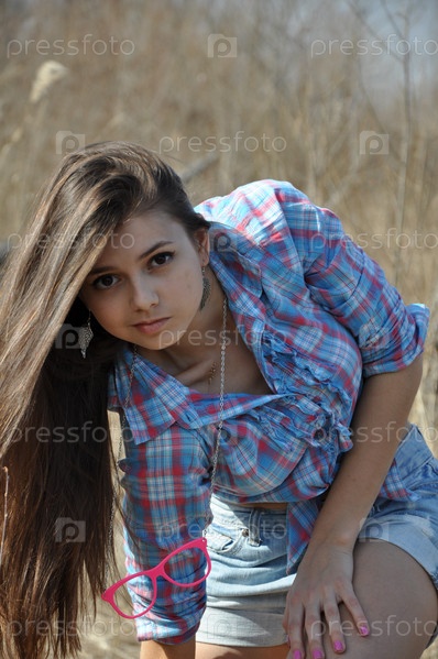 Молодая девушка позирует на природе