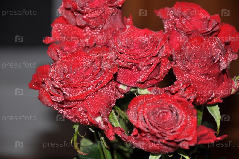 Капельки воды на лепестках красных роз