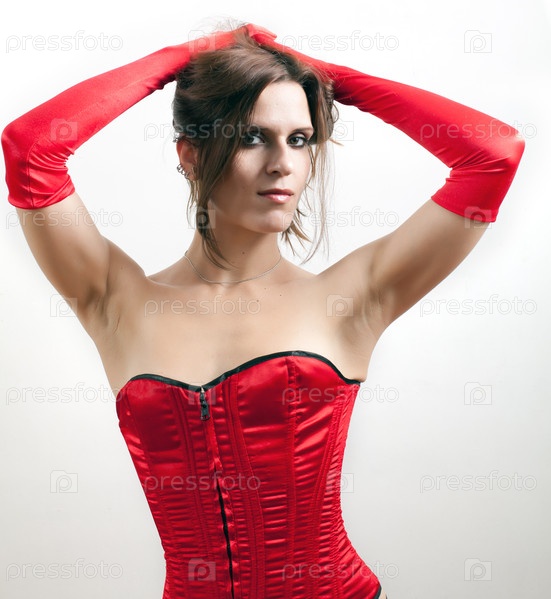 Женщина в красном корсете