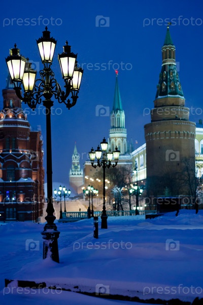 Башни Кремля зимней ночью