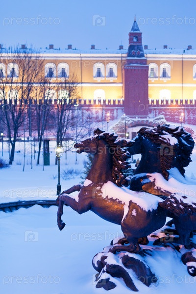 Фонтан на Манежной площади зимой, Москва
