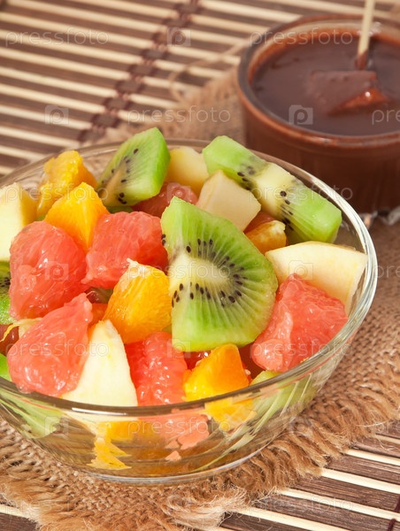 Салат из свежих фруктов и горячий шоколад