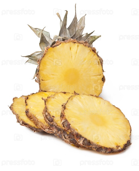 Ананас кусочками на белом фоне