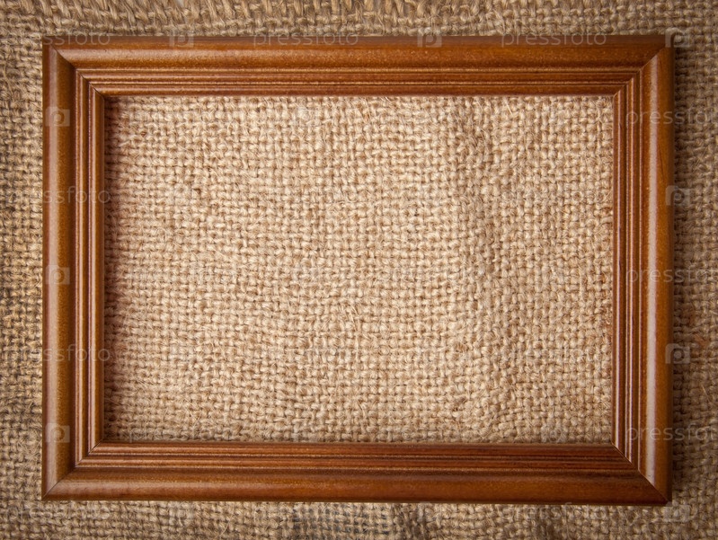 Деревянная рамка на фоне мешковины