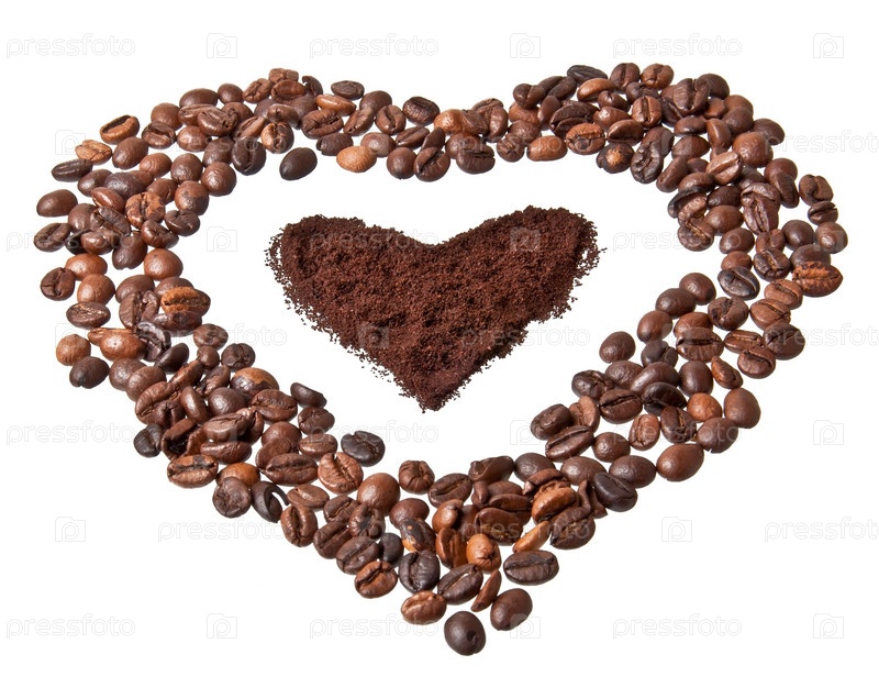 Сердце из кофейных зерен, изолированное на белом фоне
