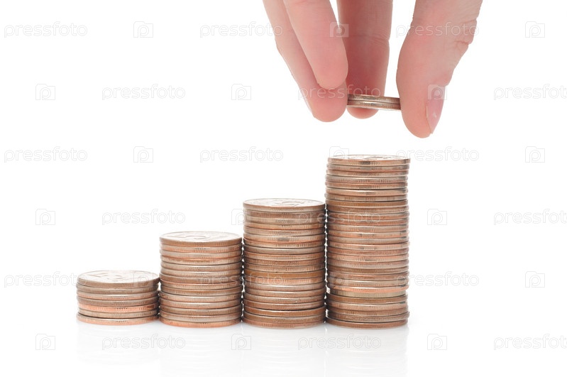 Стопки монет на белом фоне
