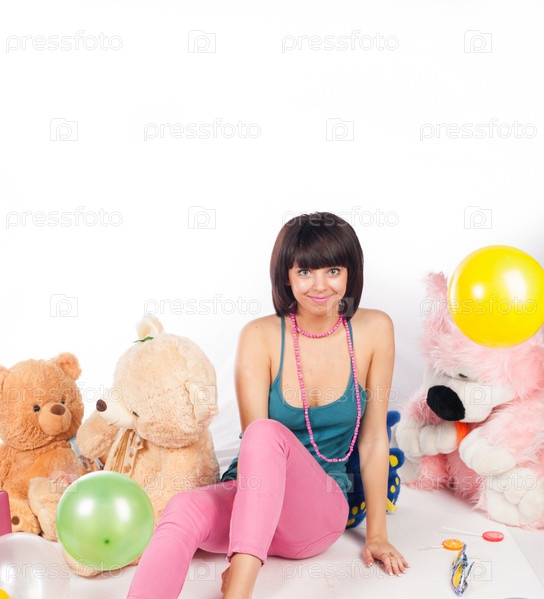 Красивая женщина с медведем